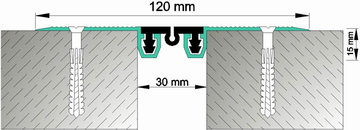Yapıştırma seramik, granit seramik, vb zeminlere uygun kaplama altı dilatasyon profili.