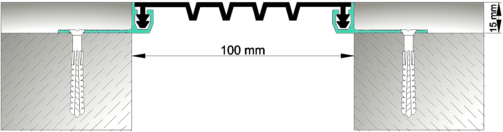 Yapıştırma seramik, granit seramik, vb zeminlere uygun kaplama altı dilatasyon profili.